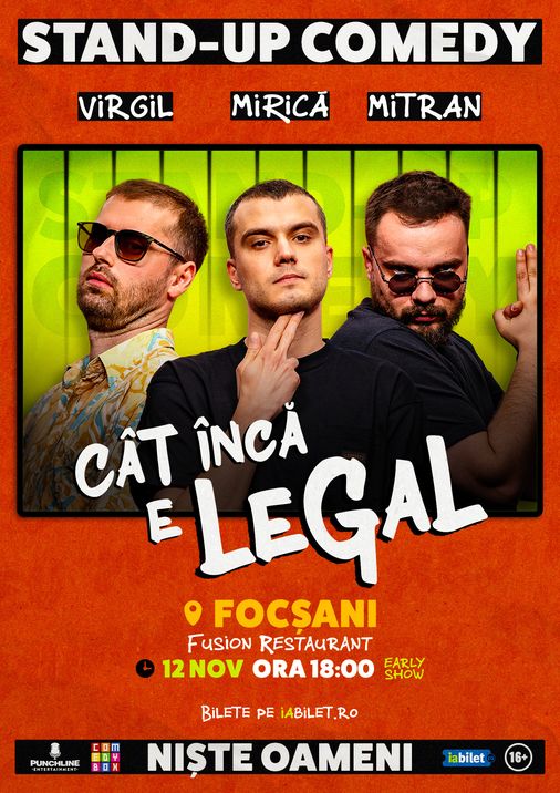 Focșani: Stand-up Comedy cu Sergiu Mirică, Virgil Ciulin și Dragoș Mitran | Niște Oameni | Cât încă e legal - ORA 18:00