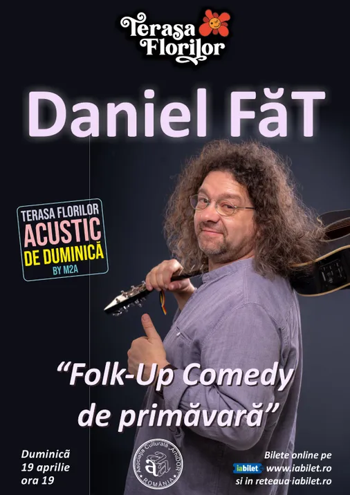 Duminică, 19 aprilie, vă invităm la o seară specială în care muzica, umorul, împreună cu talentul și energia lui Daniel FăT se vor întâlni la Terasa Florilor în cadrul concertului: “Folk-Up Comedy de primăvară”!