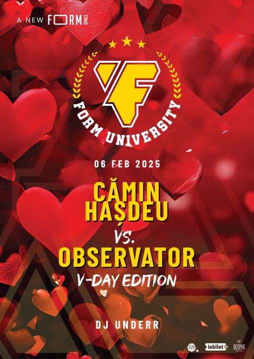 Get ready to witness an epic showdown like never before! Dorm Hașdeu is all set to face off against Dorm Observator in a thrilling battle of wits, skills, and charisma at the FORM University Party: V-Day Edition!