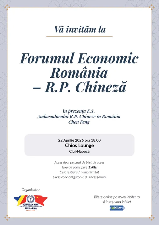 Forum Economic România – R.P. Chineză este un eveniment de networking și dialog economic care reunește reprezentanți ai mediului de afaceri și ai autorităților pentru a discuta oportunități de colaborare între România și China.