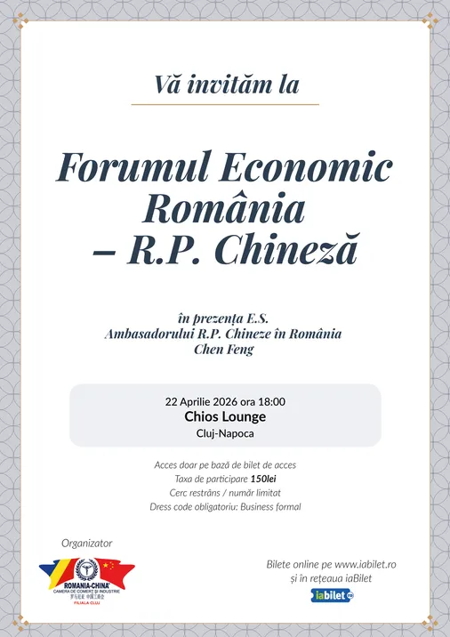 Forum Economic România – R.P. Chineză este un eveniment de networking și dialog economic care reunește reprezentanți ai mediului de afaceri și ai autorităților pentru a discuta oportunități de colaborare între România și China.
