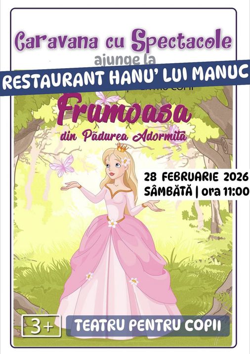 Un spectacol pus în scenă in cadrul programului Caravana cu Spectacole la Restaurant Hanu’ lui Manuc - Piața Unirii, Strada Franceză 62-64, Sector 3, București