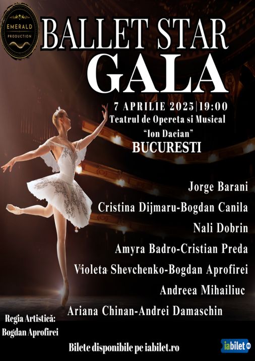 Vă invităm la Ballet Star Gala, un eveniment extraordinar ce reunește pe aceeași scenă balerini de talie internațională. O adevărată celebrare a artei dansului, această gală aduce în prim-plan momente coregrafice emblematice, interpretate de stele ale baletului mondial.