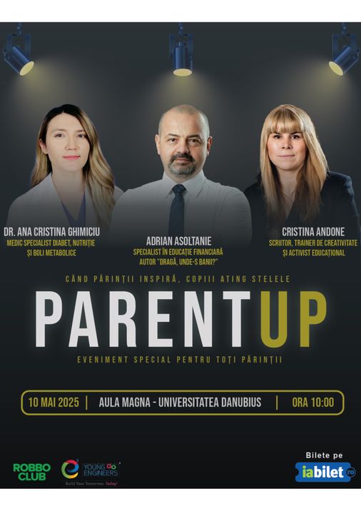 Bonus: Dacă ai copilul înscris la Young Engineers sau Robboclub Galați și participi la evenimentul ParentUp, primești 10% reducere la abonamentul din luna mai.
