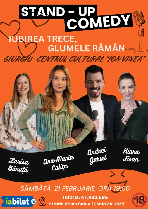Giurgiu: ,,Iubirea trece, glumele raman” Stand-up cu Calița, Garici, Kiara si Bănuță
