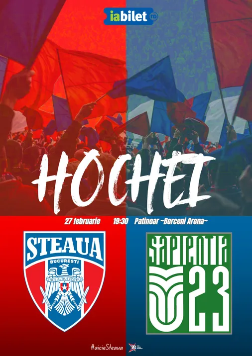 CSA Steaua București întâlnește ACS Sapienția U23 pe gheață într-un meci al pasionaților de hochei. Vino să simți adrenalina și să susții echipa din tribune!