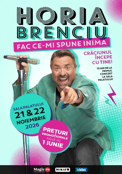 Celebrul showman și cântăreț Horia Brenciu va avea concerte retrospective, la Sala Palatului din București, pe 21 si 22 noiembrie 2026. Mai multe detalii