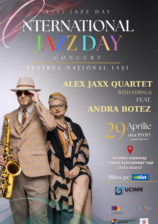 Concert de jazz cu Alex Jaxx Quartet și Andra Botez, pe 29 aprilie, la Teatrul Național „Vasile Alecsandri” din Iași, în cadrul International Jazz Day.