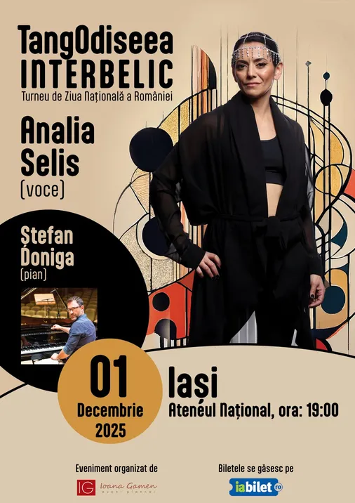 Alături de pianistul Ștefan Doniga, artista propune un spectacol rafinat, în care se întâlnesc tango-ul argentinian și tango-ul interbelic românesc, într-un dialog muzical elegant, plin de pasiune și emoție.