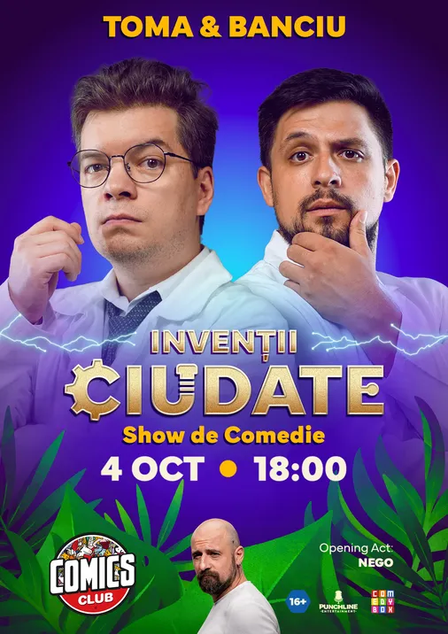 Nu e stand-up, dar e comedie. „Invenții Ciudate” este un spectacol de comedie în care Toma și Banciu*, prezintă o serie de invenții gândite și produse chiar de ei.