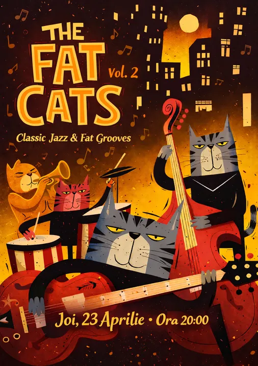 Cu influențe care te duc cu gândul la vibe-ul jucăuș din Everybody Wants to Be a Cat, seara promite libertate, atitudine și multă improvizație. Vino pentru jazz, rămâi pentru groove și lasă vibeul să te prindă.