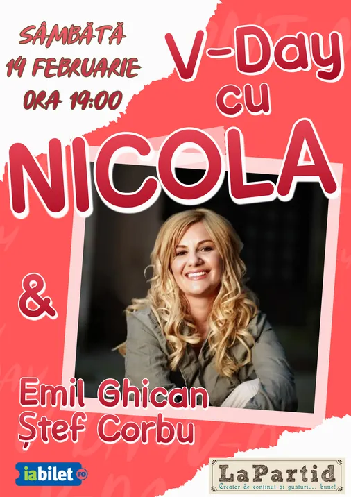 Pe 14 februarie, împreună cu Nicola, care îi are alături de ea pe scenă, pe Emil Ghican și Stefan Corbu, devenim nostalgici și exuberanți, cu un buchet de flori adus la o cină în cârciumă, cu atmosferă, cu mâncăruri alese și o sticlă de vin roșu.
