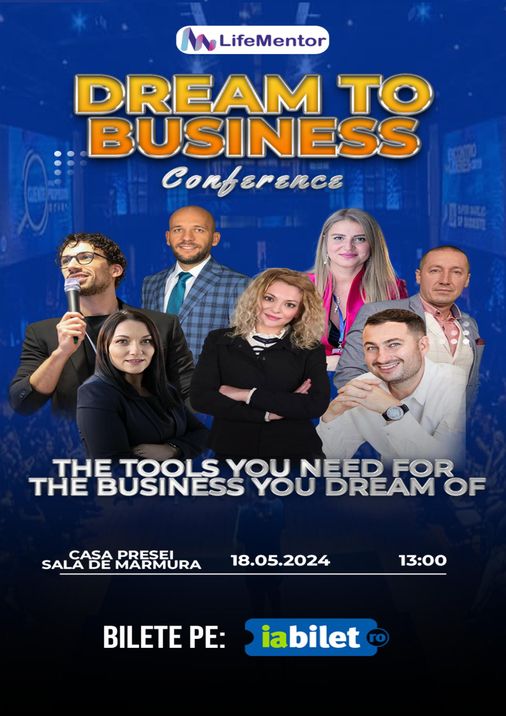 Pe 18 mai, la Casa Presei, Sala de Marmură, te invităm să participi la un eveniment esențial pentru fiecare antreprenor aflat la început de drum sau pentru oricine simte că afacerea lui nu este încă în punctul în care a visat să ajungă: Dream to Business Conference.