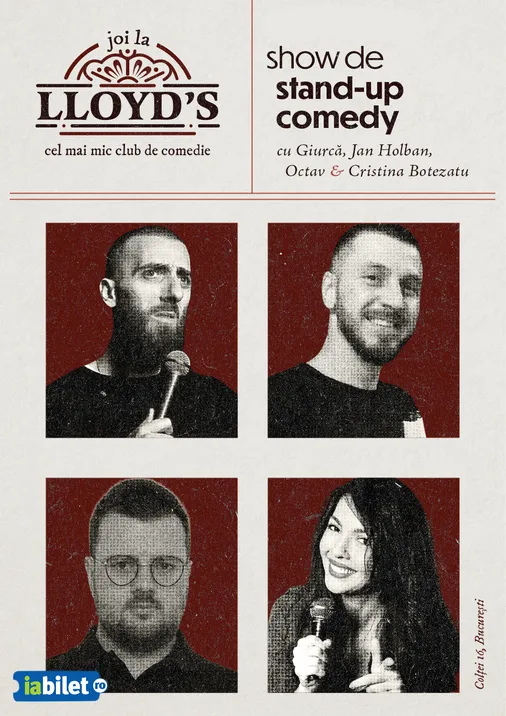 Lloyd's: Stand-up comedy cu Radu Giurcă, Jan Holban, Octavian Preda și Cristina Botezatu