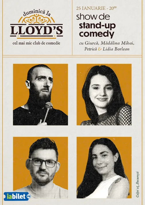 Lloyd's: Stand-up comedy cu Radu Giurcă, Mădălina Mihai, Petrică Iștoc și Lidia Borlean
