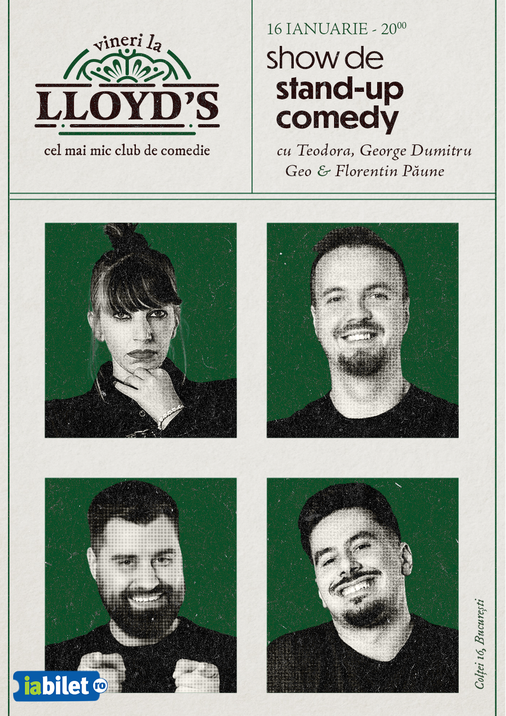 Lloyd's: Stand-up comedy cu Teodora Nedelcu, George Dumitru, Geo Adrian și Florentin Păune