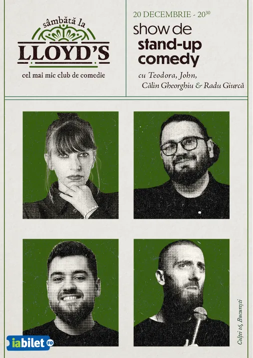 Lloyd's: Stand-up comedy cu Teodora Nedelcu, John, Călin Gheorghiu și Radu Giurcă