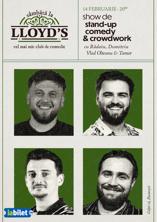 Lloyd’s: Stand-up și crowdwork cu Edi Rădoiu, Gabriel Dumitriu, Vlad Olteanu și Tamer