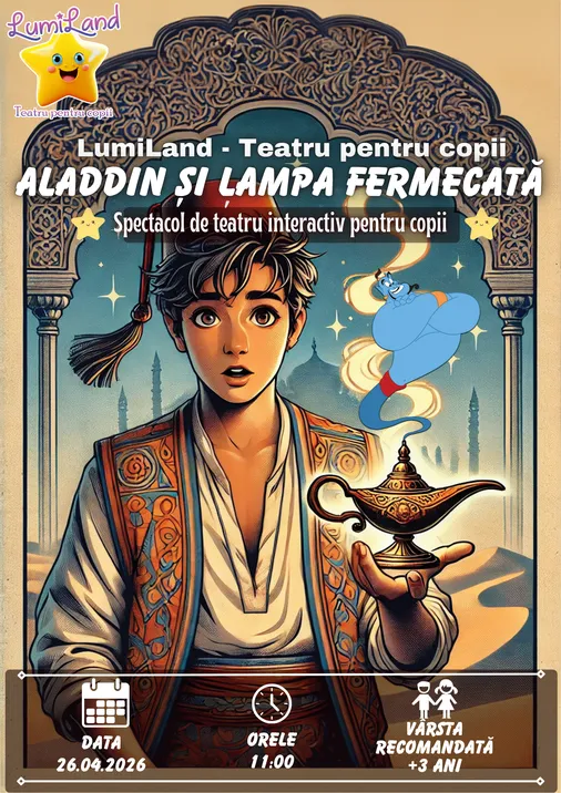 "Aladdin și lampa fermecată" prinde viață într-un spectacol de teatru interactiv la LumiLand, unde copiii nu doar urmăresc povestea, ci devin parte din ea!