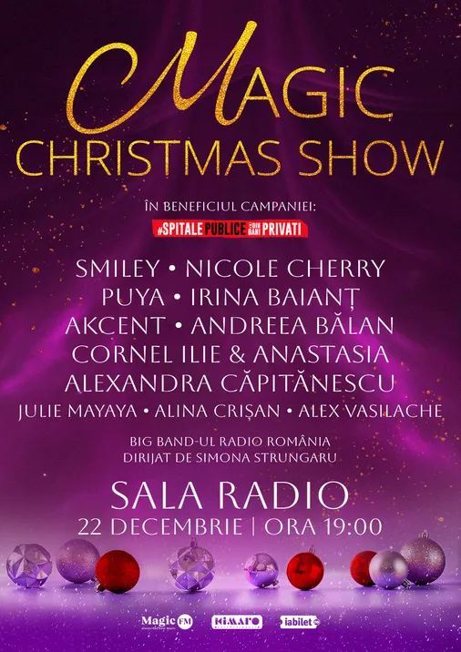 În seara de 22 decembrie, Sala Radio București va deveni scena unui spectacol de neuitat – „Magic Christmas Show”, o celebrare a bucuriei, a muzicii și a spiritului sărbătorilor, adusă publicului de unii dintre cei mai iubiți artiști români. Mai multe detalii