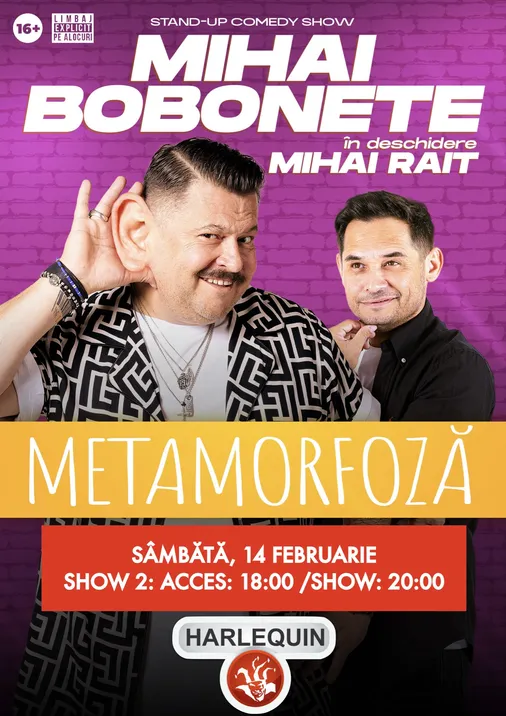 Suntem foarte încântați să anunțăm spectacolului „Metamorfoză” cu Mihai Bobonete, care va avea loc în Constanța, la Harlequin by the Lake din Mamaia!