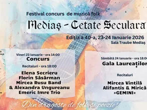 Acest eveniment cultural de tradiție va avea loc în perioada 24-25 ianuarie 2025, la Sala Traube din Mediaș, și va cuprinde concursul național de muzică folk și două seri de recitaluri susținute de invitați de marcă din lumea muzicii și poeziei.