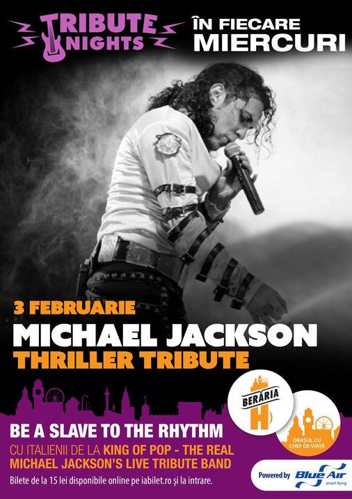 Pe 3 februarie ritmul şi mişcările lui Michael Jackson vin în Oraşul cu Chef de Viaţă pentru că pe scenă urcă italienii de la KING OF POP - The Real Michael Jackson’s Live Tribute Band, probabil cea mai bună trupa live tribute MJ a Europei, însoţiţi de dansatorii lor.