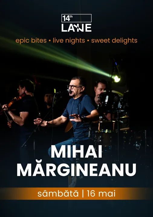 Sâmbătă, 16 mai, la 14th LANE, dăm întâlnire bucuriei alături de Mihai Mărgineanu, artistul care știe să spună povești pe note muzicale, cu umor și sinceritate. Fiecare cântec e o confesiune, fiecare refren este un motiv în plus să zâmbești, să iubești și să te bucuri de moment.