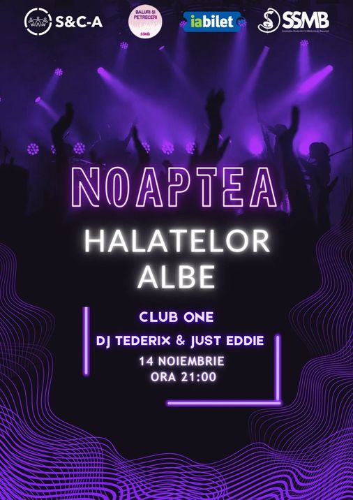 "Noaptea Halatelor Albe" revine cu forțe proaspete pe ringul de dans, unde vă așteptăm în număr cât mai mare! Mulți dintre voi ați ghicit: ne vedem sub lumina fosforescentă, pentru cel mai strălucitor neon party! Nu este necesar să te îmbraci în halat.