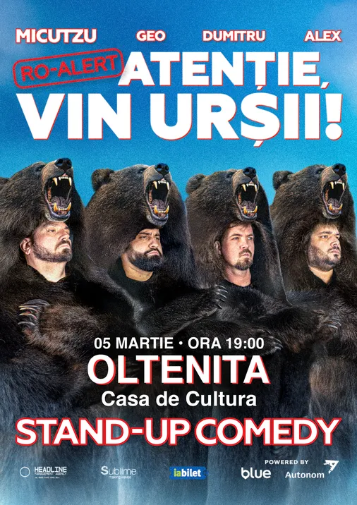 Oltenita: Stand-up Comedy cu Micutzu, Geo Adrian, George Dumitru si Alex Ionita - RO ALERT - “Atentie, vin ursii!"