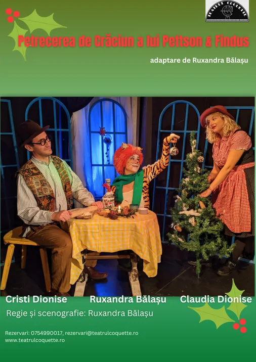 Îndrăgitele personaje Pettson și motanul lui, Findus, prind viață în noul spectacol marca Teatrul Coquette București, dedicat sărbătorilor de iarnă.