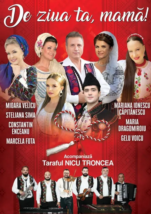 Evenimentul aduce pe scena unii dintre cei mai apreciati interpreti de muzica populara romaneasca, acompaniati de orchestra live, oferind o atmosfera calda si emotionanta, un mod perfect de a sarbatori femeile dragi din viata ta prin muzica traditionala si bucurie artistica.