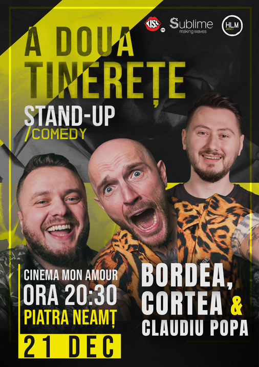 Piatra Neamt: Stand-Up Comedy cu Bordea, Cortea și Claudiu Popa - A DOUA TINERETE - ora 20:30