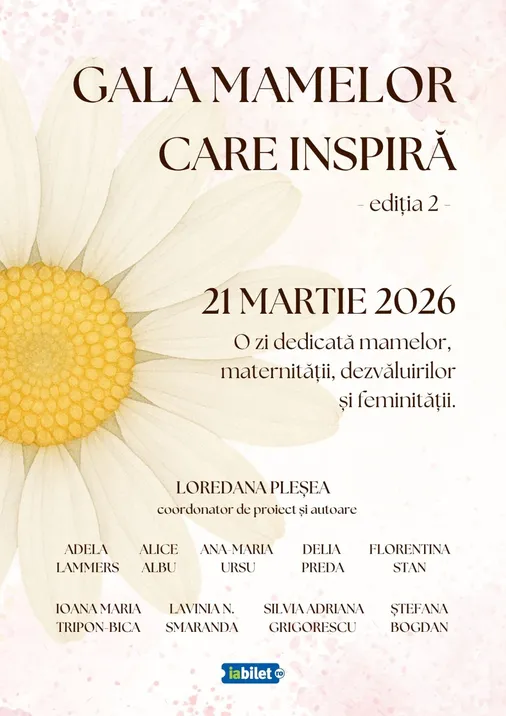 Vino alături de noi în data de 21 Martie 2026 la Gala Mamelor care Inspiră - un eveniment dedicat femeilor și mamelor din întreaga țară. Mai multe detalii