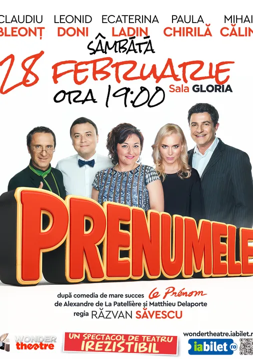 "Le Prenom" este o comedie franceză, scrisă de Matthieu Delaporte şi Alexandre de la Patellière, care a fost pusă pentru prima dată în scenă la Paris, în 2010, cu celebrul actor şi cântăreţ Patrick Bruel într-unul din rolurile principale. Piesa de teatru a fost nominalizată la mai multe Premii Molière, fiind ulterior adaptată şi pentru marile ecrane, primind cinci nominalizări la premiile César în 2013.
