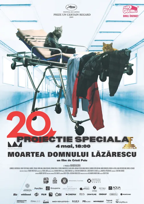 Pe 4 mai, de la ora 18:00, vă așteptăm la o proiecție specială a filmului „Moartea domnului Lăzărescu”, regizat de Cristi Puiu – un titlu emblematic al Noului Val Românesc, distins cu premiul Un Certain Regard la Cannes. Filmul propune o incursiune lucidă și necosmetizată în realitatea cotidiană, construită cu un realism aproape documentar.