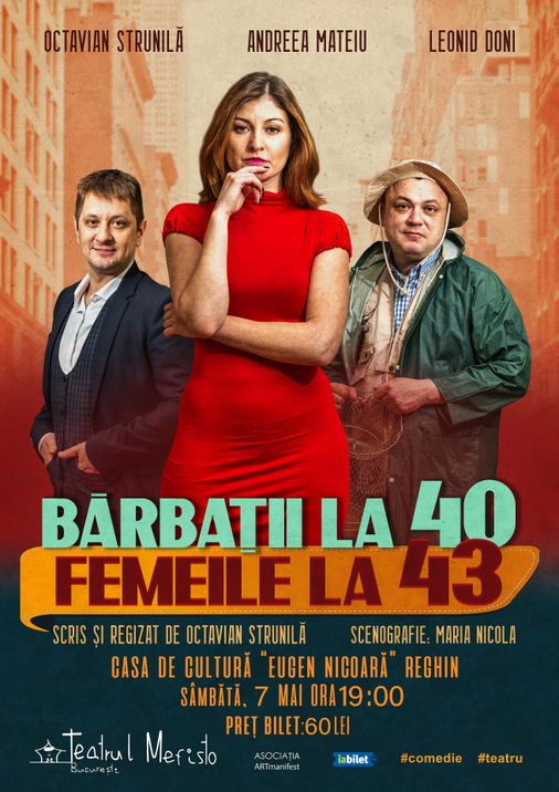Să te înșele soția cu “cel mai prost din clasă”, să te prinda criza de la 40 cu un milion de euro în cont sau să fii părăsit pentru că esti un om prea bun la suflet, sunt problemele cu care se confruntă personajele noastre surprinse în trei tablouri: la 29, la 40 si apoi la 43 de ani. În distribuție: Leonid Doni, Andreea Mateiu si Octavian Strunilã. Scris si regizat de Octavian Strunilã.