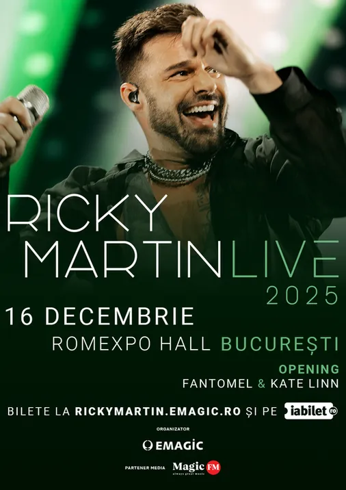 RICKY MARTIN vine la București pe 16 decembrie, la Romexpo Hall. Biletele sunt disponibile la rickymartin.emagic.ro, tickets.emagic.ro și iaBilet.
