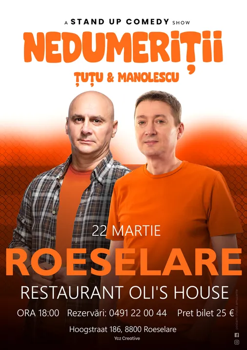 Roeselare, adună-ţi gaşca şi vino duminică, 22 martie, la Oli’s House, să îi vezi pe Cristi – ce mi-ai pus pe tăviţă, mamă – Manolescu şi Dan Ţuţu, un povestitor desăvârşit care te va cuceri cu naturaleţea sa.