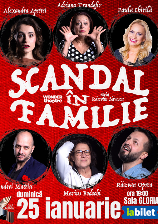 Scandal in familie, o nouă comedie romantică în regia lui Răzvan Săvescu revine la Sala Gloria. O farsă salbatică cu amanți, încurcături, o întâlnire la miezul nopții și un urs flămând. Adică hohote de râs fără întrerupere până la final.