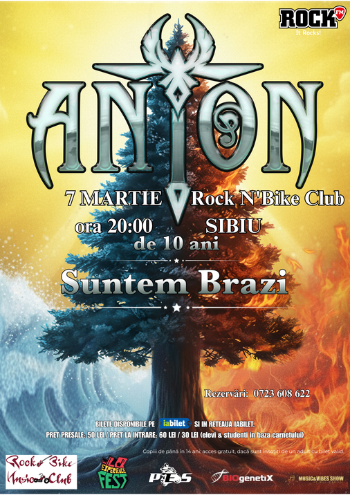 Turneul aniversar ANTON “de 10 ani Suntem Brazi” ajunge la Sibiu, înRock N'Bike Club , sambata, 07 martie!