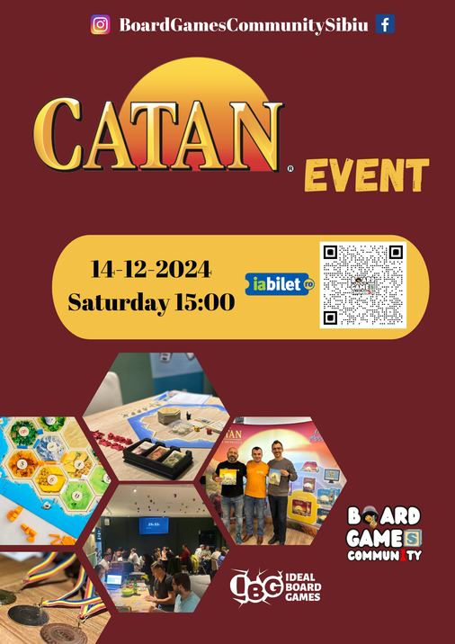 Între 13-15 decembrie, GameFest Sibiu revine cu a doua ediție, aducând în prim-plan pasiunea pentru jocurile de societate. Ca partener al festivalului, Board Games Community Sibiu organizează sâmbătă, 14 decembrie, de la ora 15:00, un eveniment special dedicat iubitorilor de Catan.