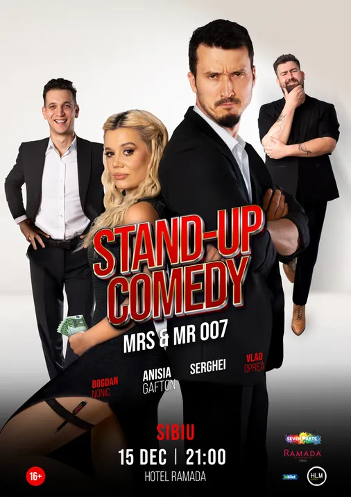 Anisia Gafton și Serghei, "agenții secreți" ai umorului românesc, sunt headlinerii serii, gata să te dezarmeze cu glume tăioase și o chimie contagioasă. Li se alătură Bogdan Nonic, cu stilul său unic, și Vlad Oprea, care va deschide seara cu energia sa proaspătă. Inspirat de eleganța spionilor, acest turneu aduce pe scenă umor inteligent și o atmosferă de acțiune.