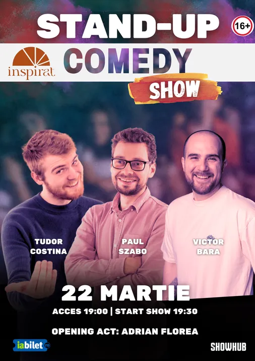 Te asteptam la Inspirat in Sibiu cu un show de Stand-Up Comedy cu Paul Szabo, Tudor Costina si Victor Bara.