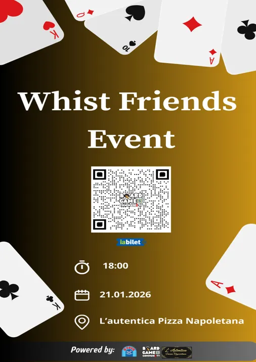 Board Games Community Sibiu te invită Miercuri, 21 Ianuarie, de la ora 18:00, la un nou eveniment/campionat de Whist, care va avea loc in cadrul localului L`Autentica Pizza Napoletana Sibiu de pe Strada Doamna Stanca din Sibiu.