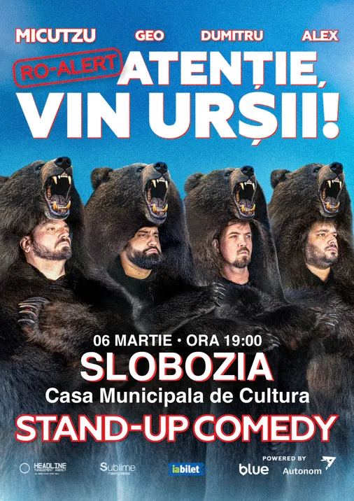 Slobozia: Stand-up Comedy cu Micutzu, Geo Adrian, George Dumitru si Alex Ionita - RO ALERT - “Atentie, vin ursii!"