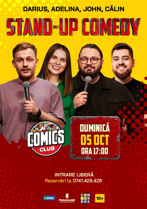 Stand-up Comedy cu Darius Grigorie, Adelina Toma, John și Călin Gheorghiu la ComicsClub!