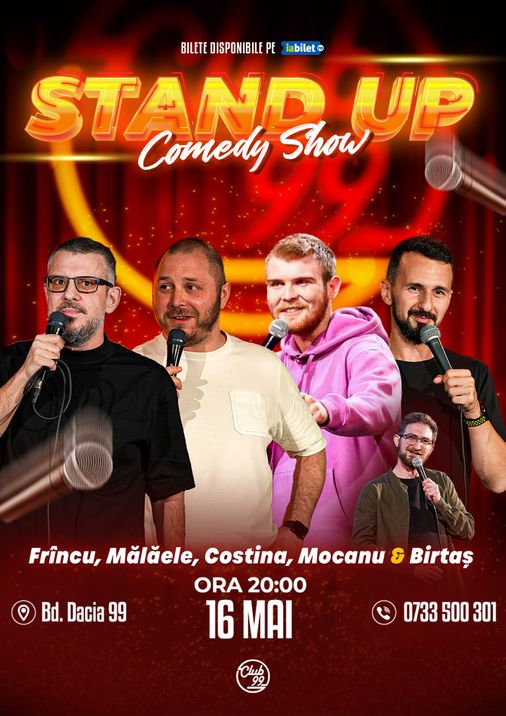 Joi de la 20:00 vă așteptăm la o seară de stand-up comedy alături de Frînculescu, Mălăele, Costina, Mocanu - Birtaș