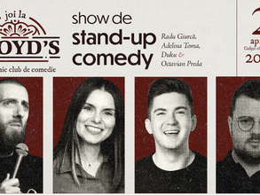 Duminică, 6 aprilie, ora 20:00, la Lloyd's Comedy Pub dăm startul distracției alături de 4 comedianți talentați care ne vor binedispune cu un Show de Stand-up Comedy plin de umor și energie Mai multe detalii