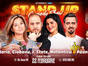 Duminică de la 20:00 vă așteptăm la o seară de stand-up comedy alături de Ioana State, Sergiu Mirică, Bogdan Mălăele si George Dumitru